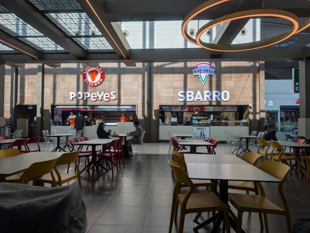 フードコートを見つけて、POPEYES(ポパイズ)とSBARRO(スバーロ)に即決。