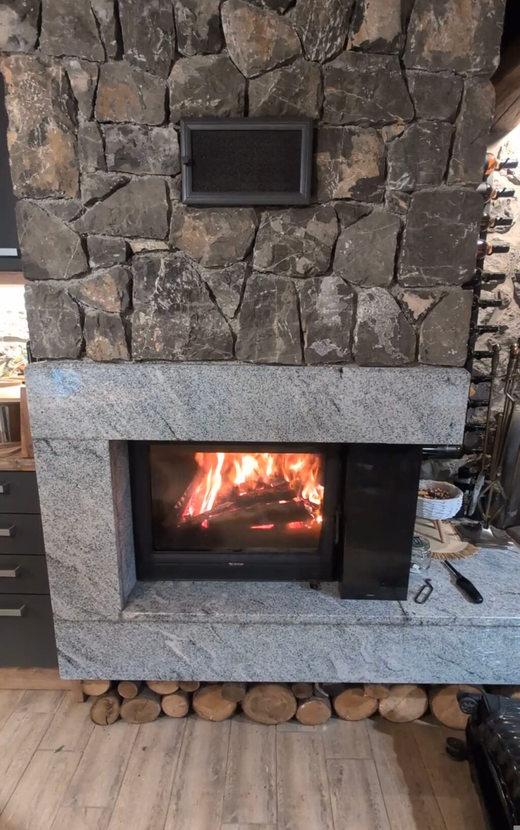 夕食を終えたあと、せっかくなのでAirbnbの暖炉をつけてみようと思ったのですが、どうやっても火がうまくつかず😅