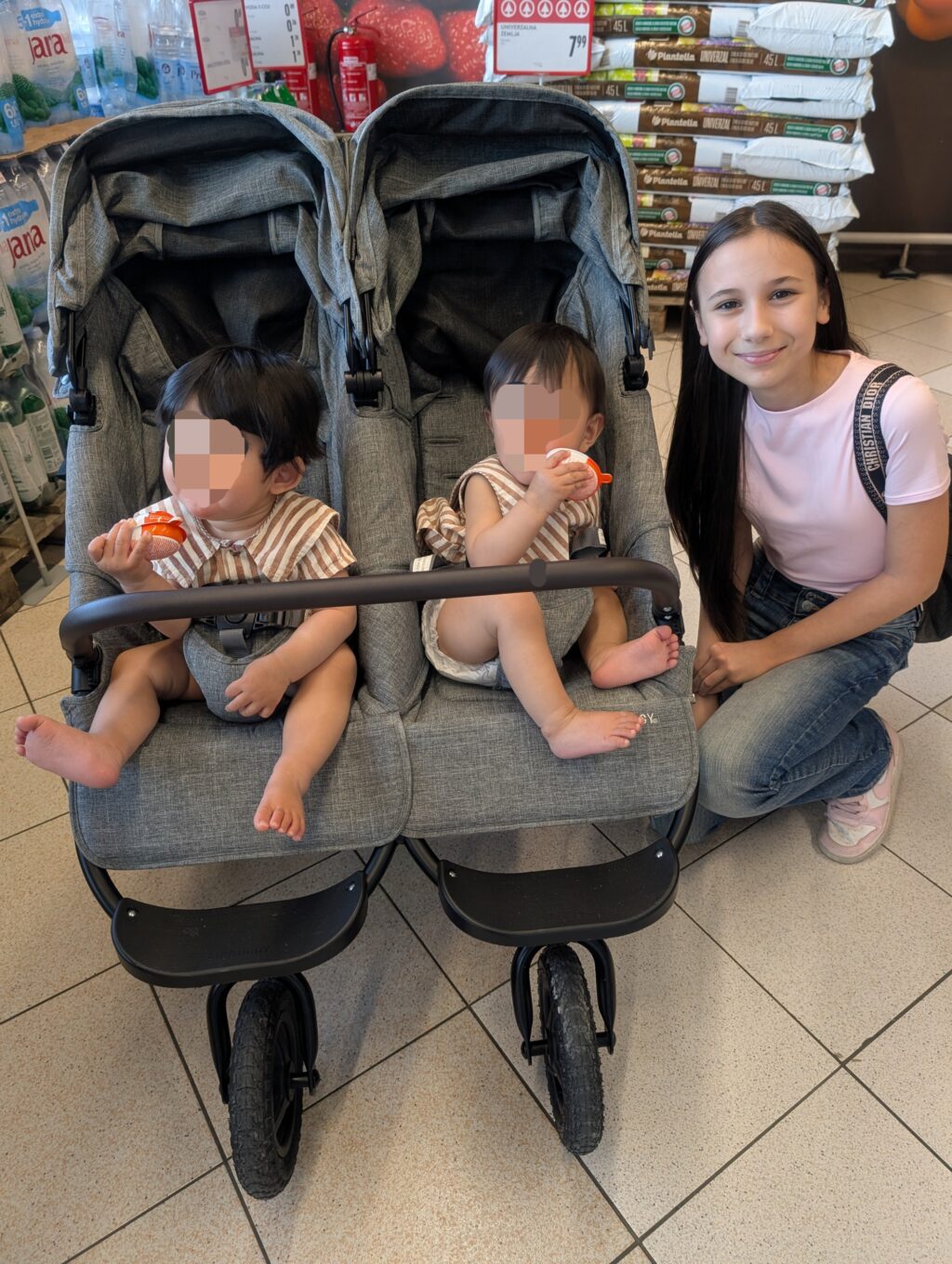 すると、お店の入り口付近で出会った女の子が、「Twins!キュート!」と言って、双子と少し遊んでくれて☺️