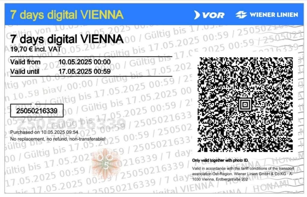 - 7日間のデジタルウィーン乗車(19.70€)
