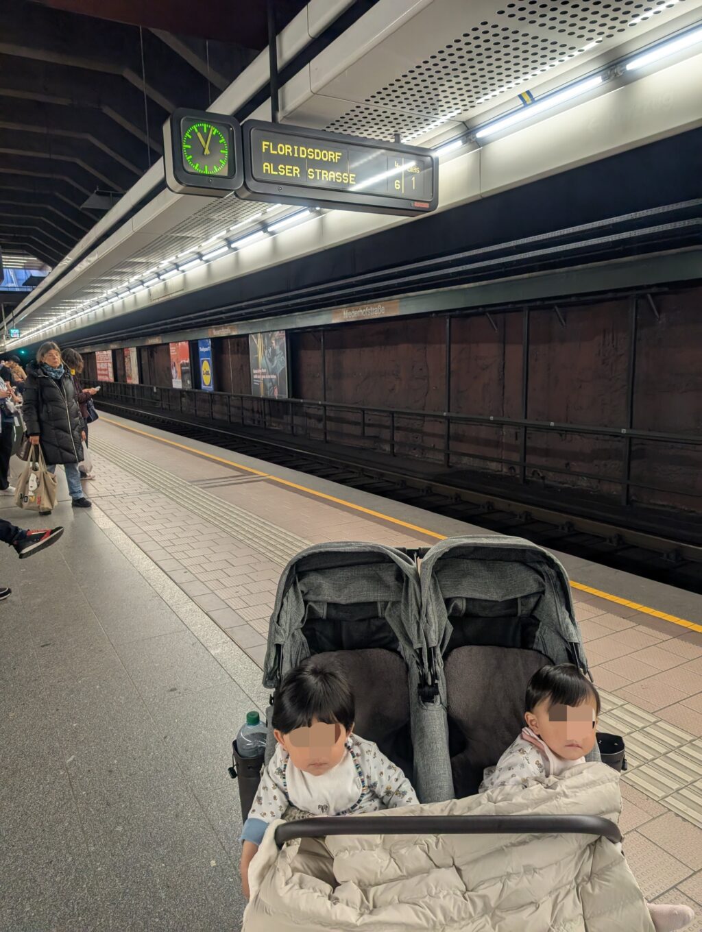 車内も綺麗で利用者も多く、治安の良さを感じました。双子はしっかり爆睡😂(約20分乗車)