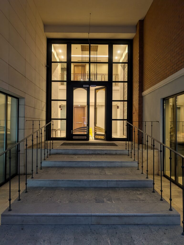 昼夜ともに警備員さんが常駐。エントランスや建物の雰囲気がしっかりしていて、特に子連れでも安心感が高い滞在でした。