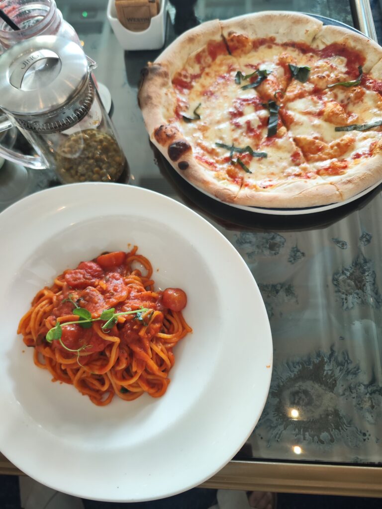 パスタとピザを頼みましたが、どちらもおいしい🤤
